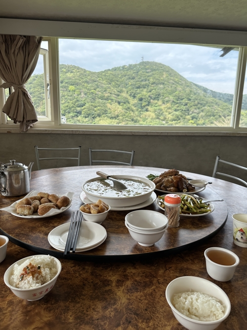 一上山,我們就直接前往餐廳。這裡的菜都是直接現採現煮的,每一樣都新鮮好吃。我們吃飽了還到樓下跟老闆買菜,但因為老闆還在挑菜,所以他請我們先出去逛逛,等等再回來拿。