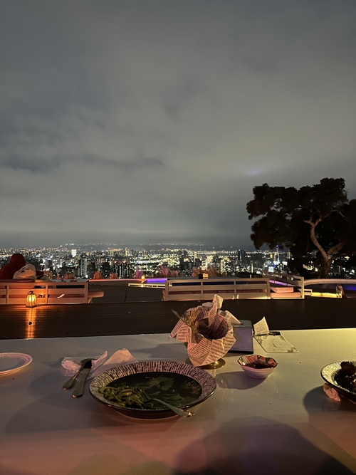 最後我們悠閒地開下山,到了今晚的夜景餐廳。雖然傍晚有點雲層沒能看到日落,但當華燈初上,看著我最愛的台北閃閃發亮著,心裡還是有股莫名的幸福感。